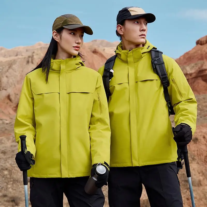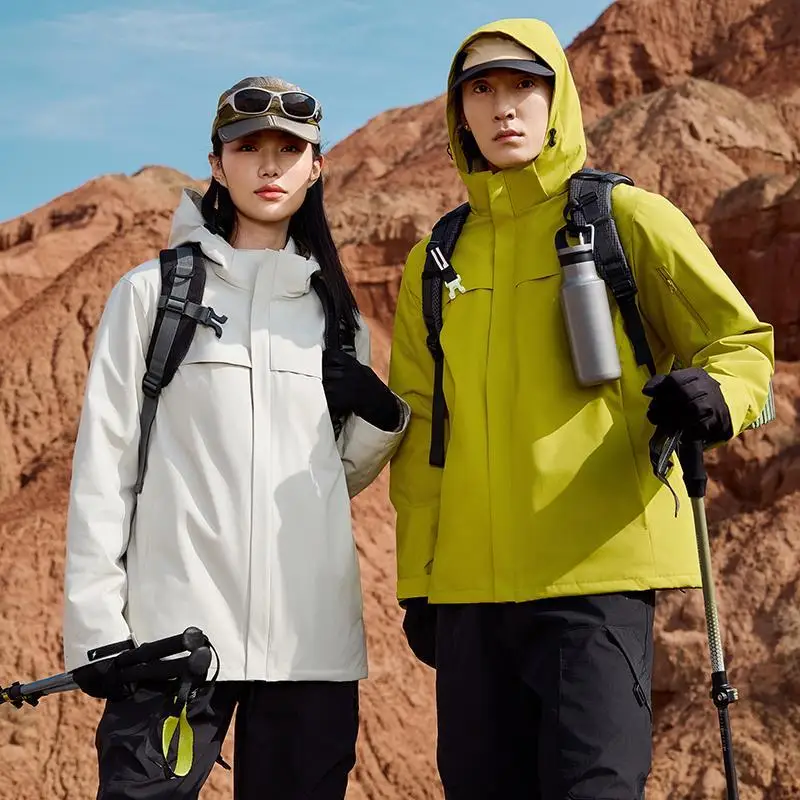 New Unisex Hard Shell Waterproof Breathable for Winter Outdoor Mountaineering Jacket Stand Collar Solid Zipper